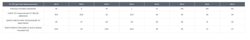 SaS Hoodie Size Chart